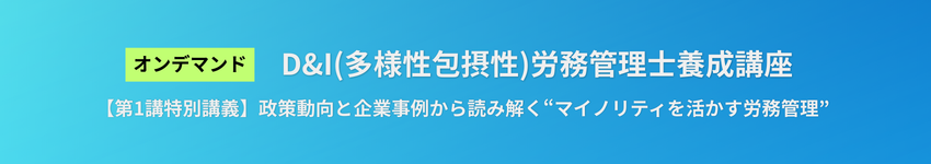 本講座は、主に企業のD&I推進に不可欠な採用・労務管理面の知識やスキル・ノウハウ、コミュニケーション力を体系的に学ぶ専門プログラムです。