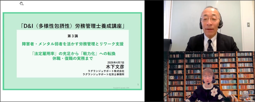 木下氏講義:障害者・メンタル弱者を活かす労務管理とリワーク支援~「法定雇用率」の充足から「戦力化」への転換、休職・復職の実務まで