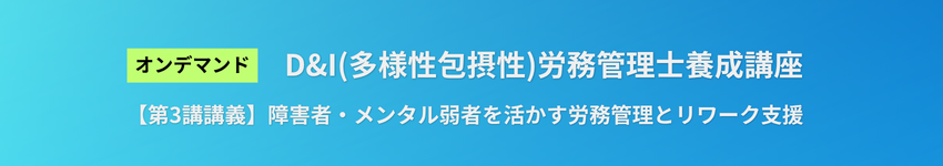本セミナーでは、この共通する視点を軸に、障害者雇用の基本から合理的配慮の本質、メンタル不調の初動対応、復職判断の実務、そして定着・戦力化のポイントまでを体系的に整理します。