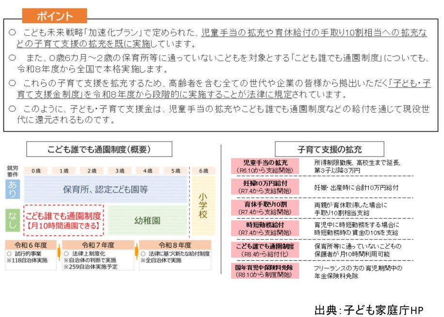 政府は2023年12月に策定した「こども未来戦略」において、2030年までを少子化の流れを反転させる「ラストチャンス」と位置づけました。この戦略を実現するための安定的な財源として、社会全体で子育てを支える仕組みとして創設されたのが、この支援金制度です。
