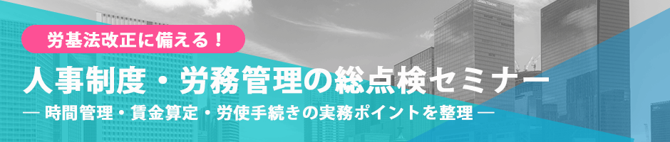 本セミナーでは、これらの労基法改正の検討内容を実務目線で整理したうえで、実務に影響が出やすい論点や、現行制度のままでは課題が生じやすいポイントを中心に解説します。単なる「法改正の解説」にとどまらず、実務担当者が今後に備えて「何を」「どの視点で」見直すべきかを整理するためのセミナーです。
