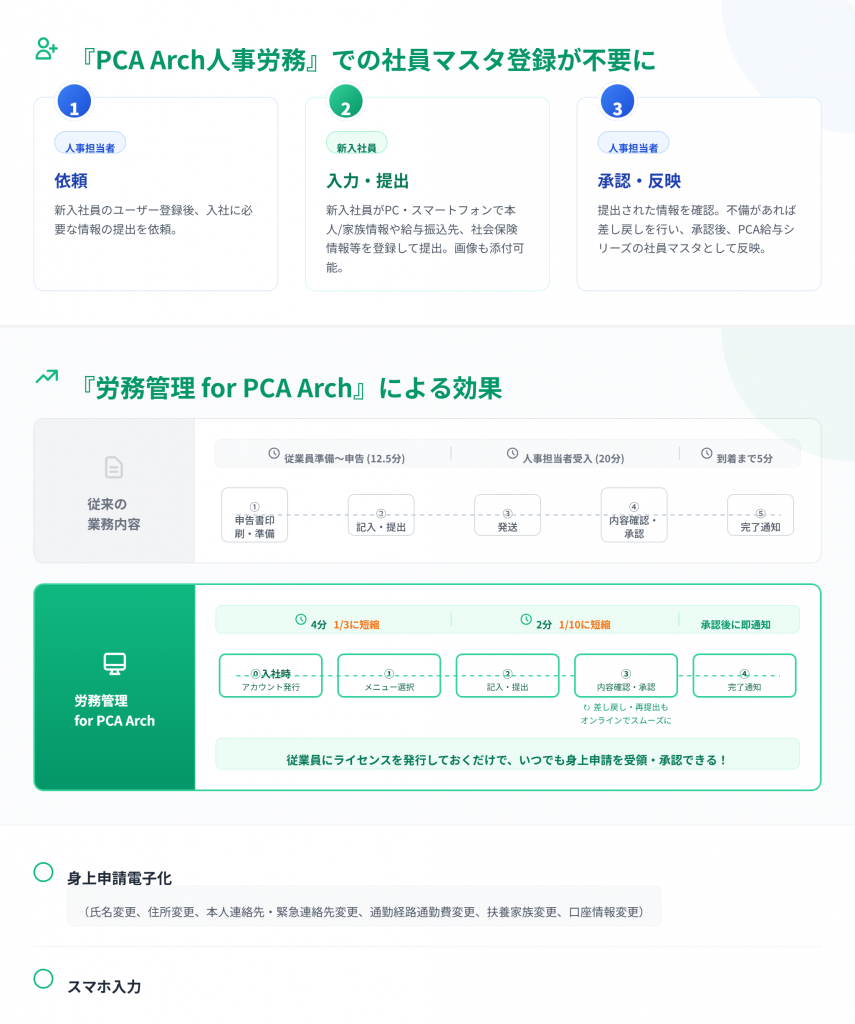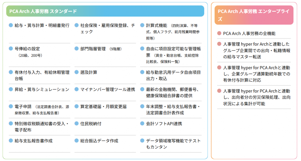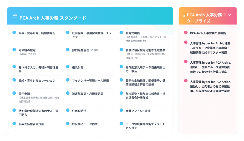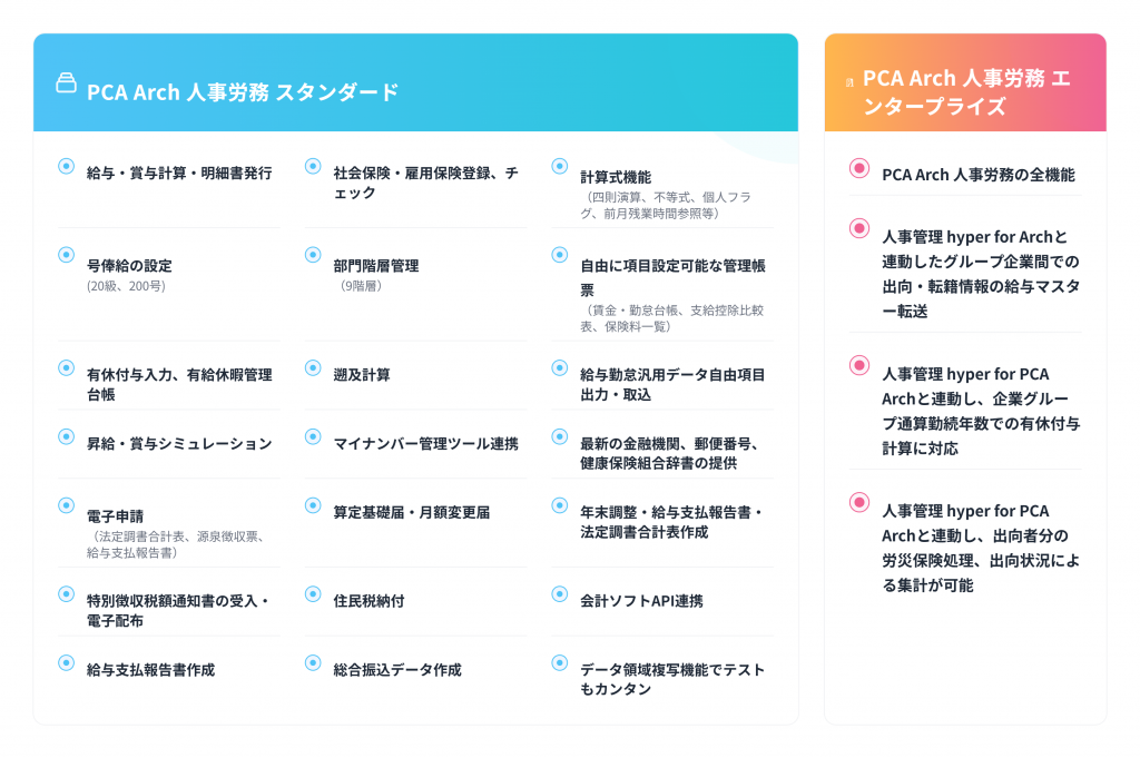 『PCA Arch』は財務経理・人事労務・販売管理をワンストップでサポートする基幹業務クラウドサービスです。