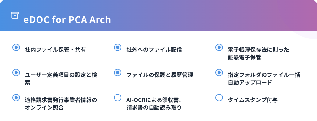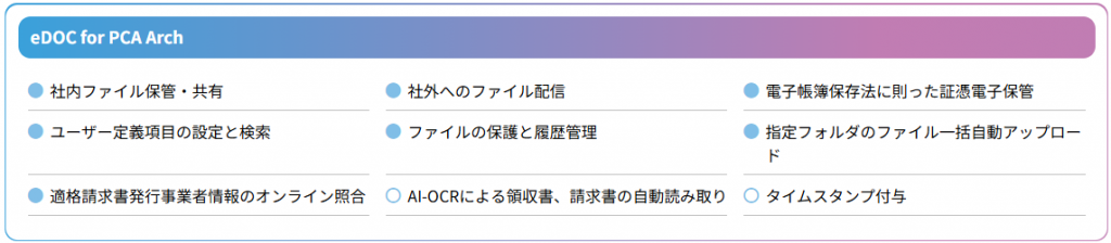 『PCA Arch 人事労務』『人事管理 for PCA Arch』と連携する『eDOC for PCA Arch』を利用すれば、提出書類をデータ化し、
