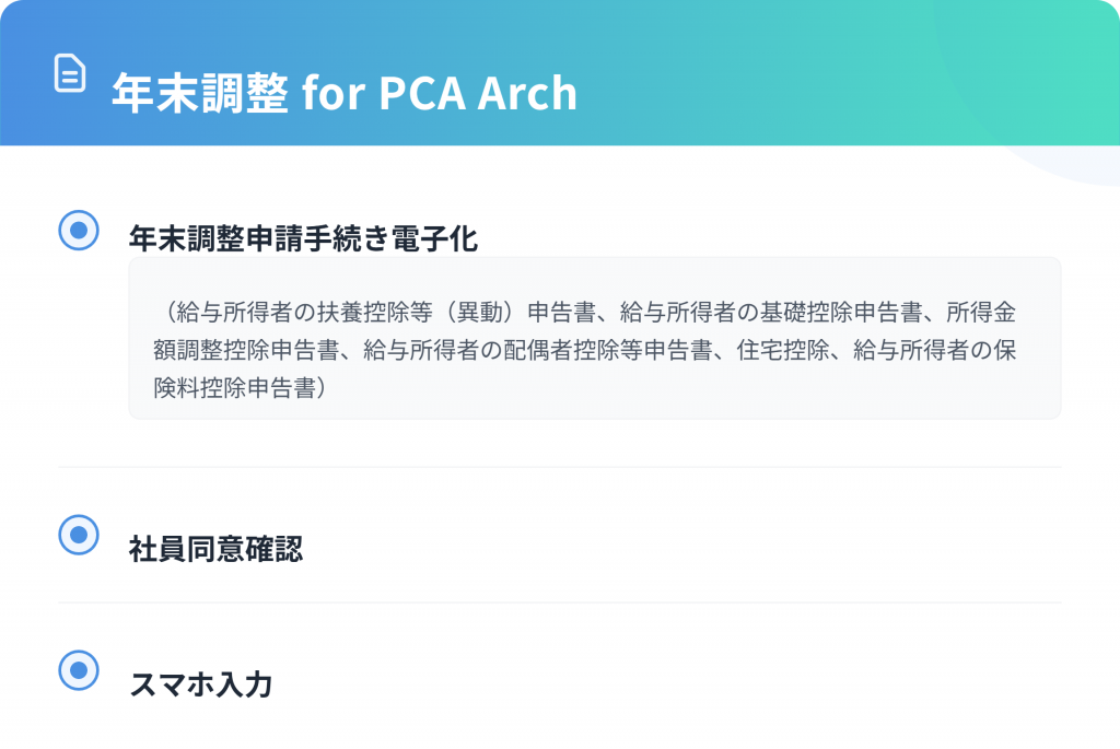 ※ご利用には「PCA給与シリーズ」が必須となります。